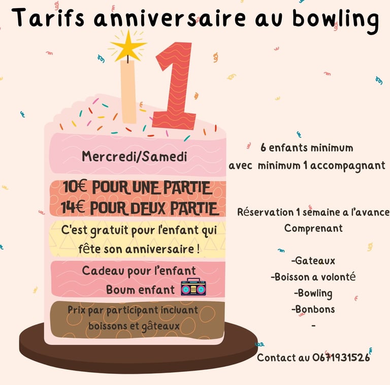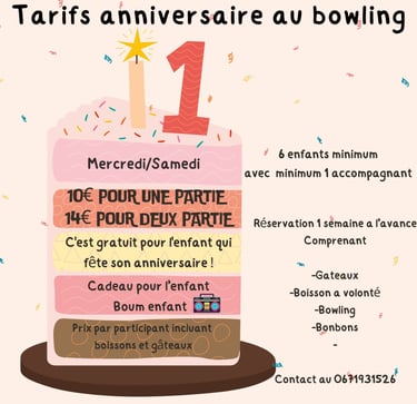 L'Arizonya Bowling est l'endroit parfait pour célébrer l'anniversaire de votre enfant. Situé au cœur de la ville, nous proposons une expérience amusante et inoubliable pour les petits et les grands. Voici une description détaillée de ce que vous pouvez attendre pour une fête d'anniversaire chez L'Arizonya Bowling